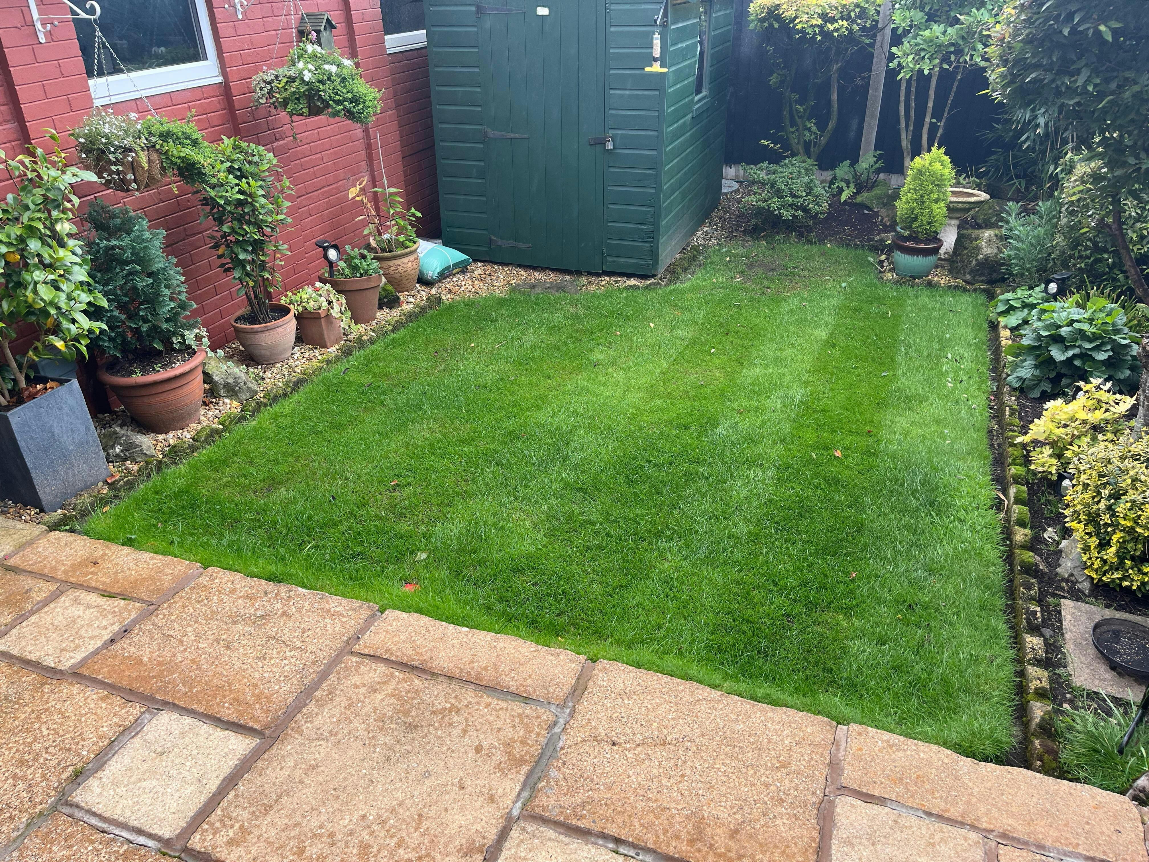 Both lawns now get comments from neighbours and dog walkers regarding the colour and thickness. Even after a severe dry summer in the South East the rear lawn has bounced back with a vengeance requiring a trim every 7-10 days.